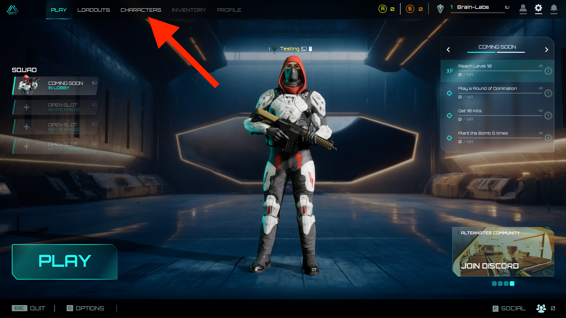 From the main menu, use the top navigation bar to select the Characters section.