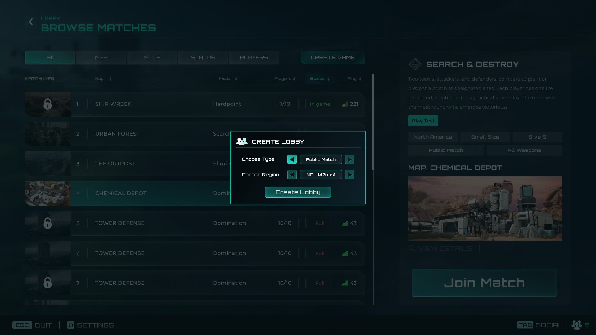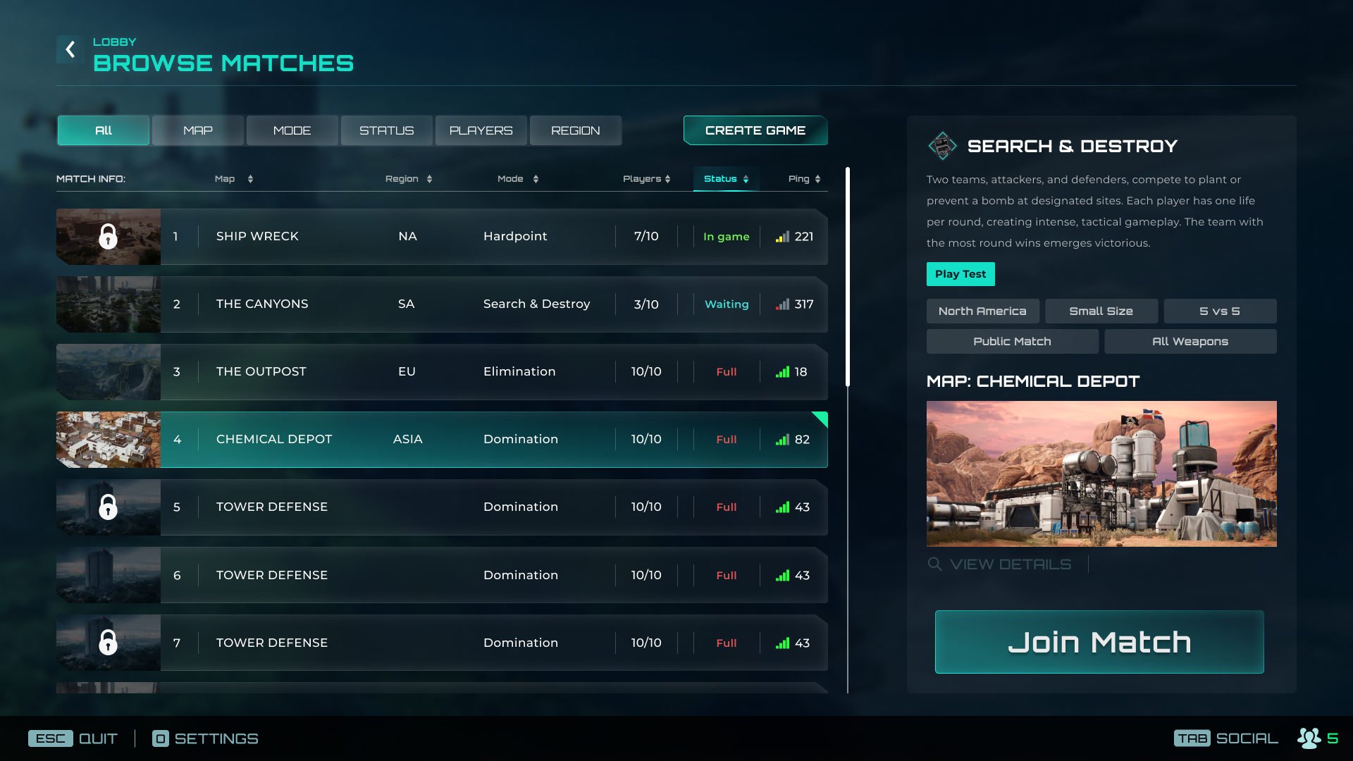 Click the Join Match button next to your chosen server to join the match.